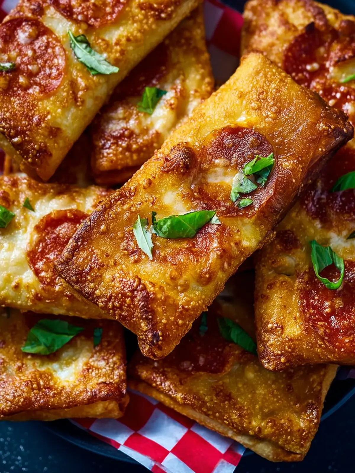 Delicious air fryer pizza rolls filled with savory ingredients, perfect for a quick snack or appetizer.