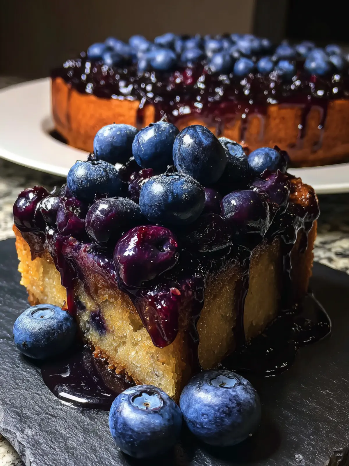 10. Allow the cake to cool slightly before slicing. Serve warm or at room temperature, garnished with additional blueberries if desired.