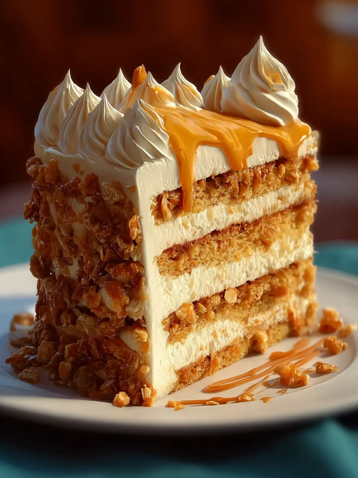 For a more decadent version, consider turning your butterscotch crunch cake into a layered treat. Simply divide the batter into three cake pans and add layers of whipped cream or buttercream frosting in between. A drizzle of homemade butterscotch sauce on top can elevate this cake to new heights.