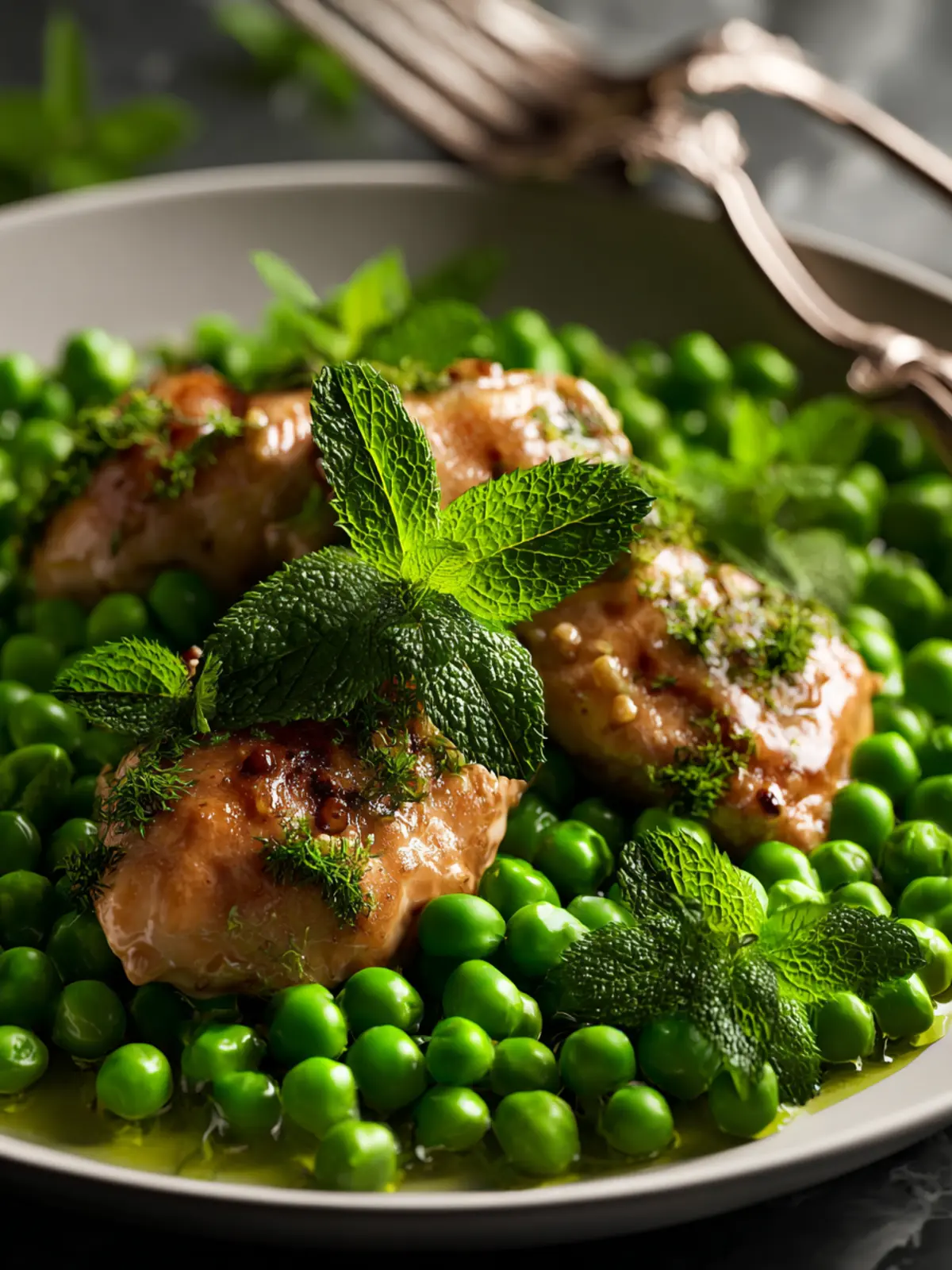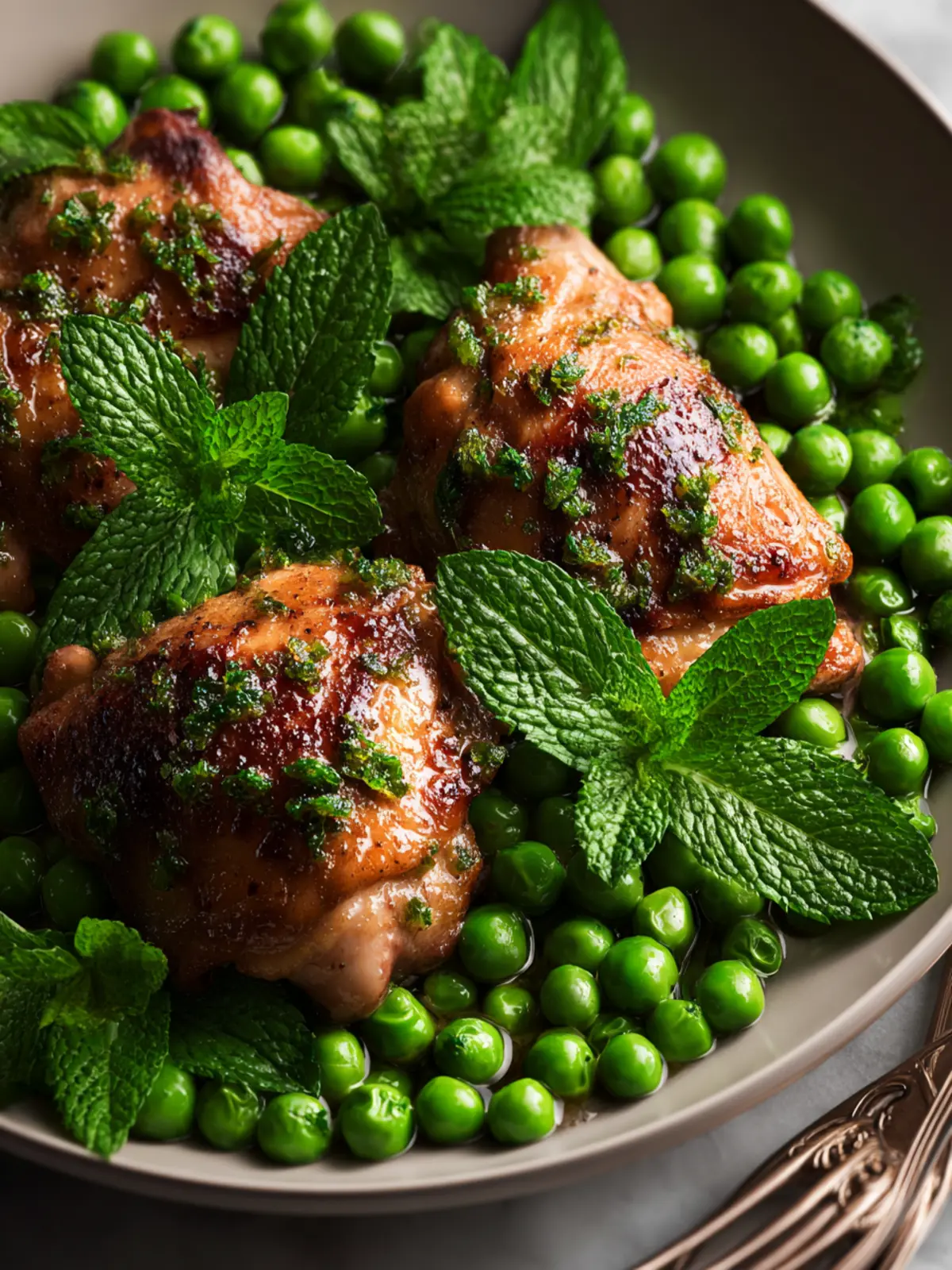 Mint is a star player in chicken with peas and mint, but don’t hesitate to play around with flavor contrasts. A pinch of lemon zest or a splash of balsamic vinegar can brighten the dish and help cut through the richness of the chicken.