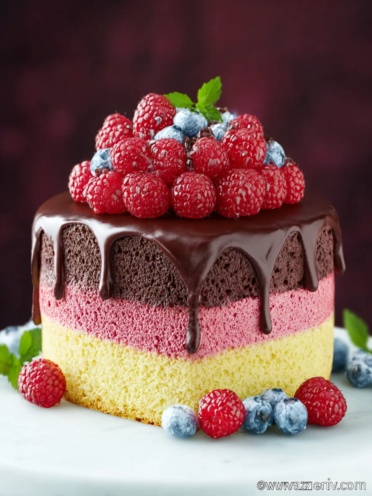 This cake features intuitive layers that balance richness with a fruity brightness. The contrast of dark chocolate and vibrant raspberries creates a visual and taste sensation that is sure to impress at any gathering.