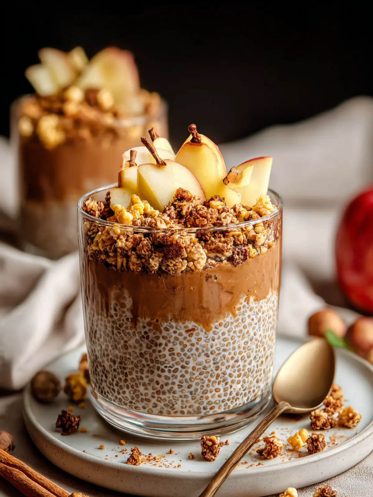 - Layer the chia pudding and apple mixture in serving glasses or bowls until filled.