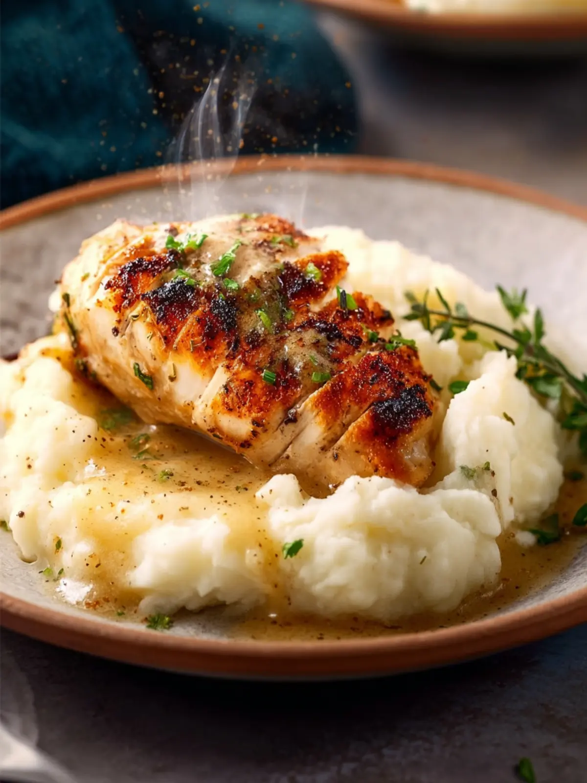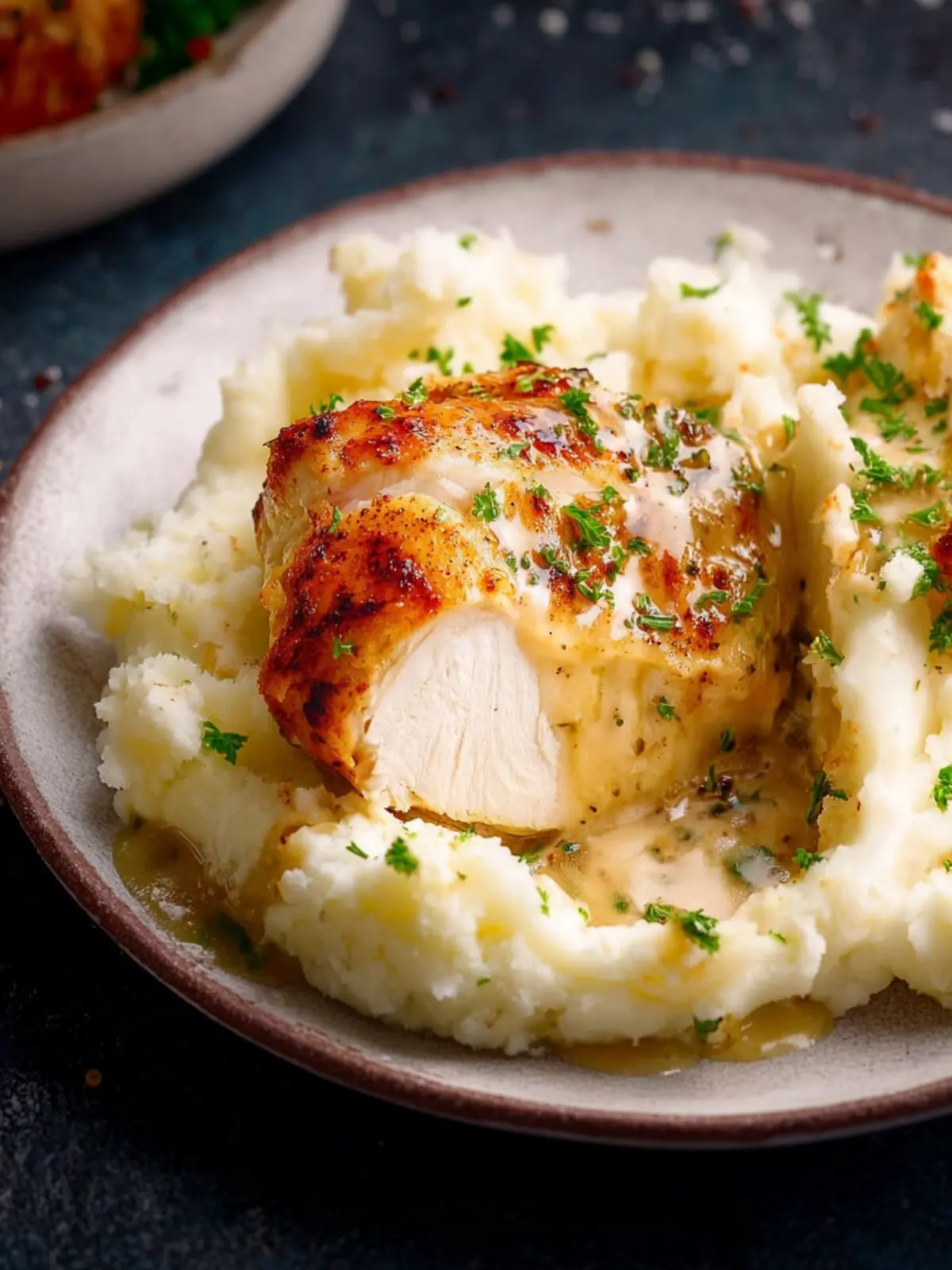 Finish off your plate with a sprinkle of fresh herbs—parsley or thyme work wonderfully. Not only do they add a pop of color, but they also enhance the flavor profile, making your creamy chicken and mashed potatoes a feast for the eyes and palate. Enjoy your meal!