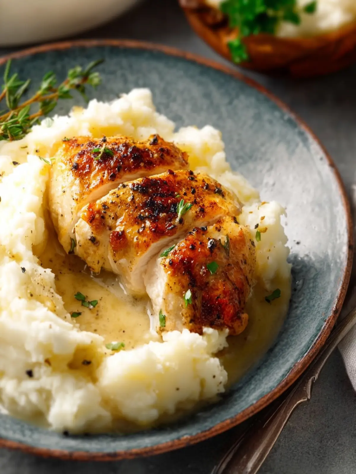 Herbs and Seasonings: Fresh thyme or rosemary brightens the creamy chicken and mashed potatoes flavor profile, while salt and pepper boost the overall taste. A sprinkle of parsley adds a pop of color and freshness right before serving.