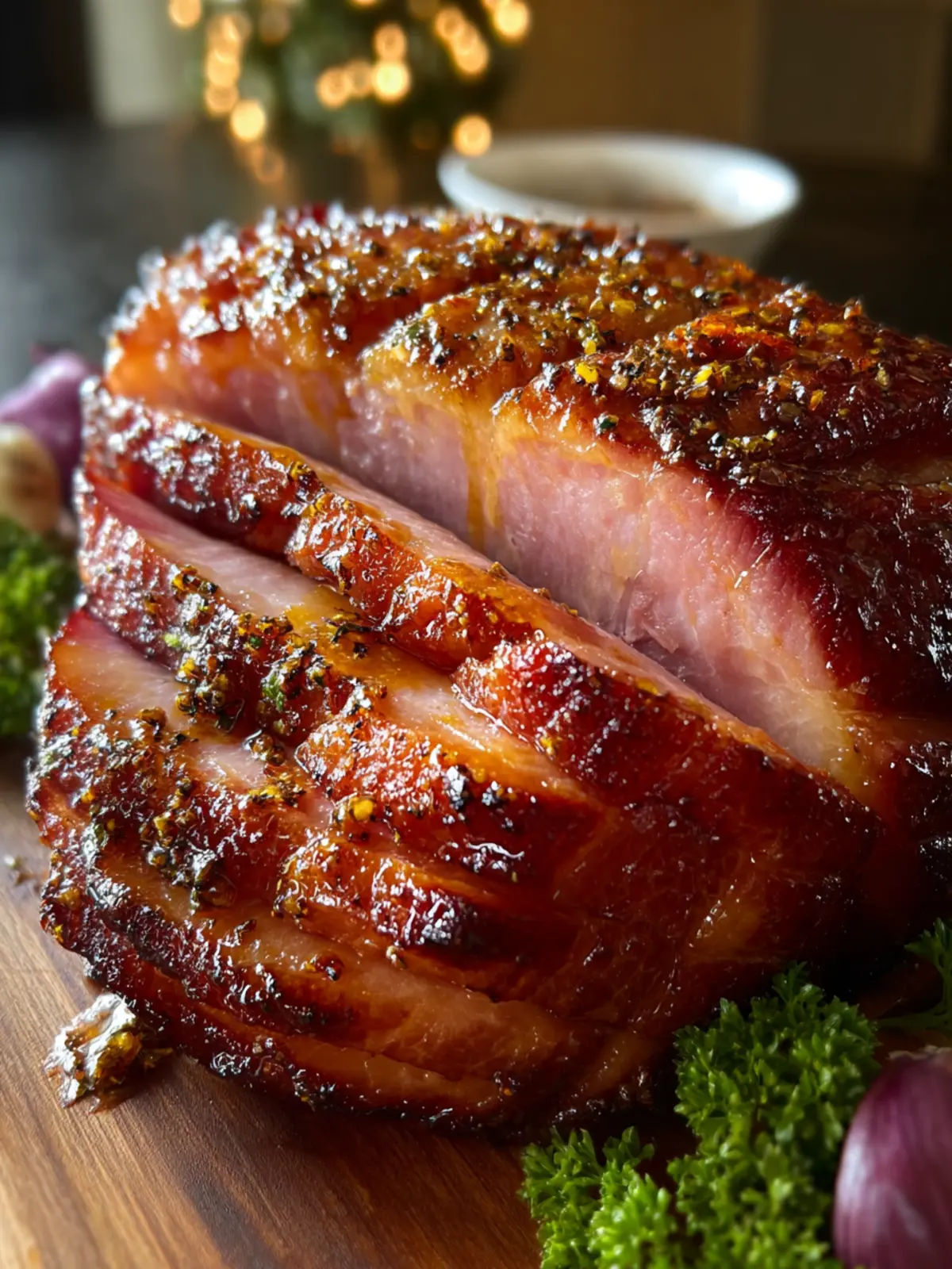 • Honey Mustard Glaze: A mix of honey, Dijon mustard, and a splash of apple cider vinegar creates a sweet and tangy contrast that perfectly complements the savory ham.