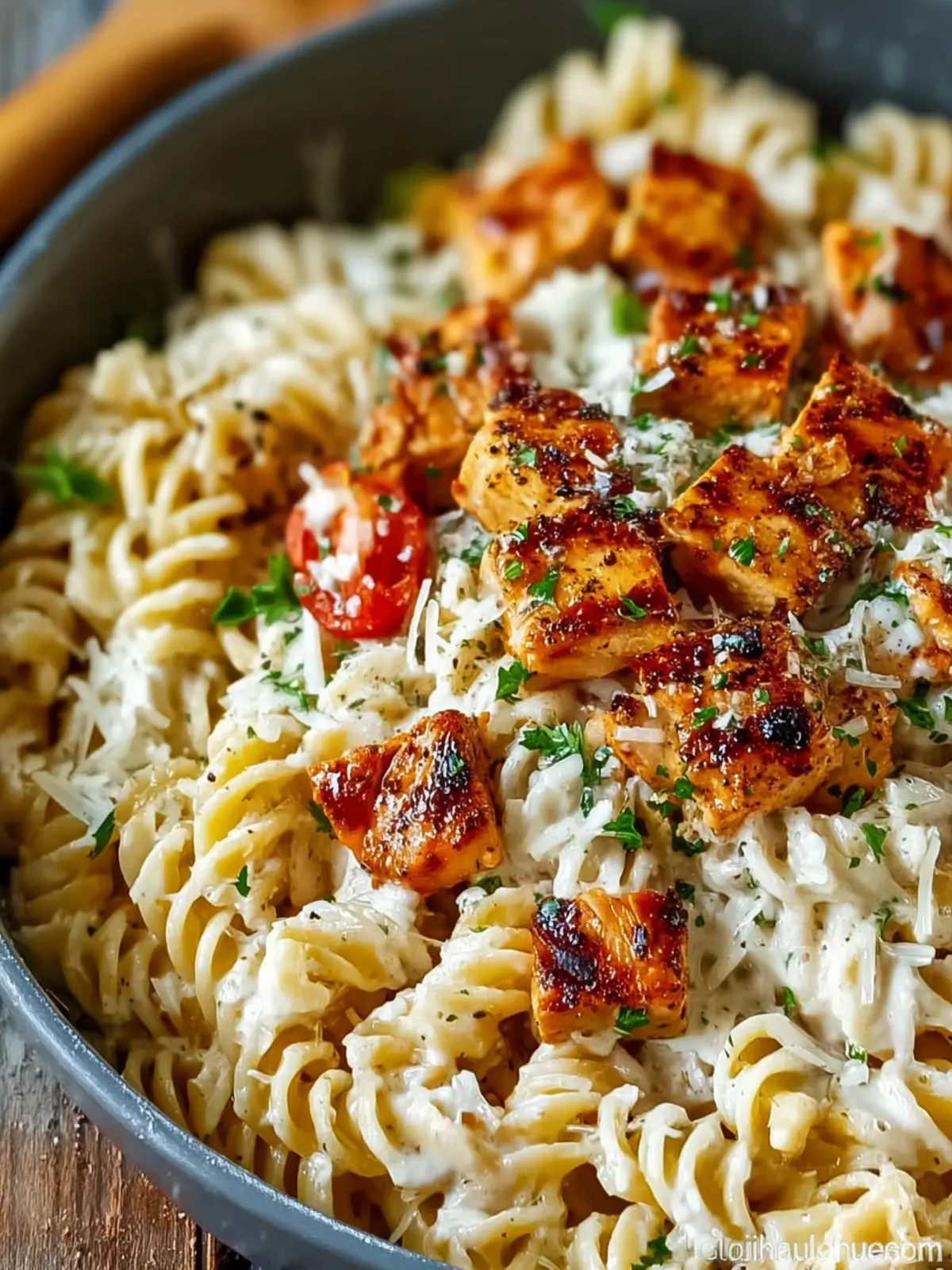 This dish features tender chicken pieces bathed in a creamy garlic Parmesan sauce, tossed with al dente pasta. With every forkful, the rich flavors blend beautifully, evoking a sense of indulgence that feels special, even on a regular Tuesday night. As you cook, the aroma of garlic sautéing in olive oil fills your kitchen, instantly inviting everyone to gather around the table.