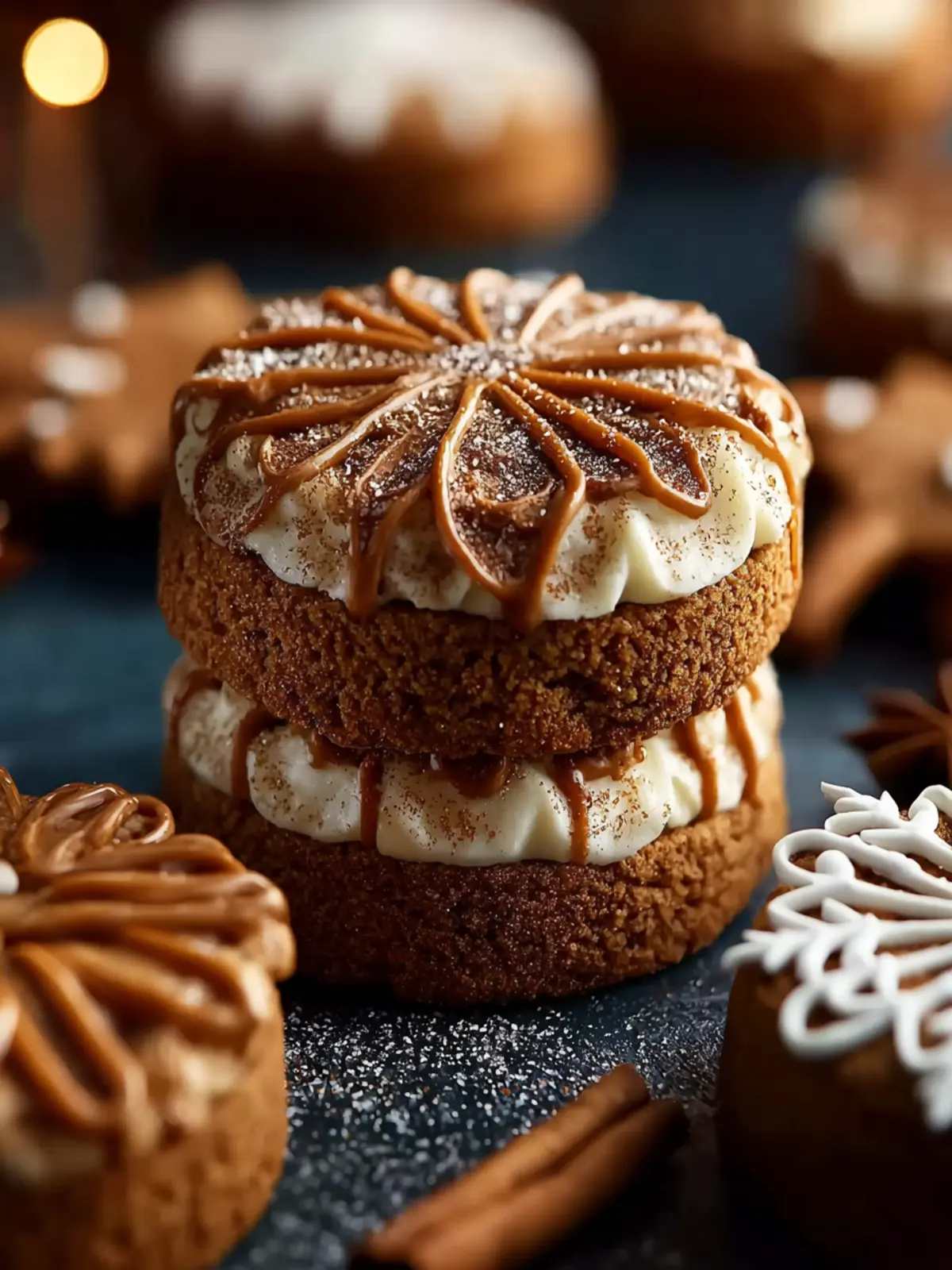 Delicious gingerbread cookies filled with a creamy cheesecake center, perfect for the holidays!