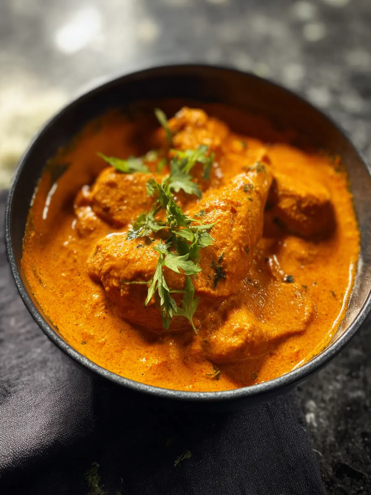 A flavorful curried chicken dish made with spices, yogurt, and tomatoes.