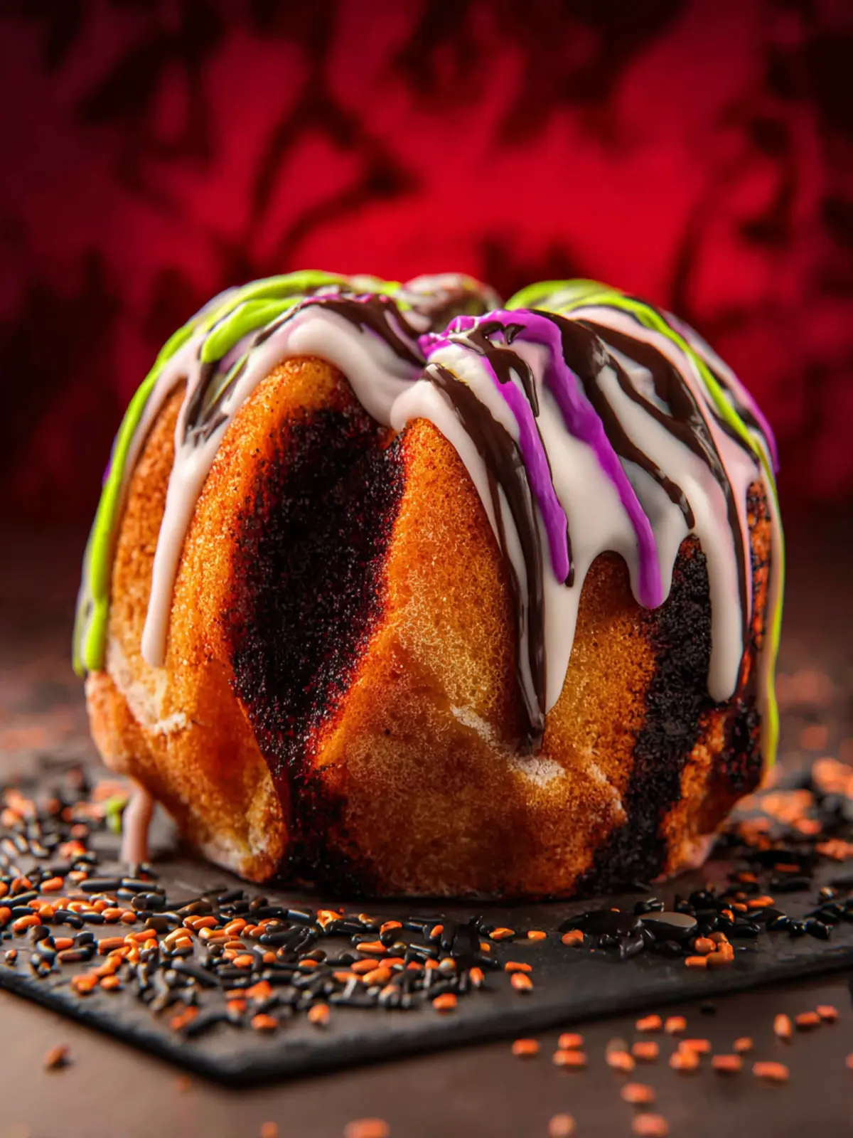 - Chocolate glaze: Drizzle it for a sinister look, or cover the cake entirely for a smooth finish.