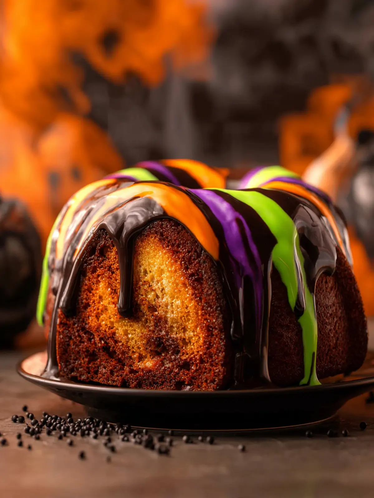A drizzle of festive icing or ganache enhances not just flavor but also adds to the visual allure of your cake. For a Halloween twist, consider using orange or green food coloring to create a vibrant glaze that captures the holiday spirit.