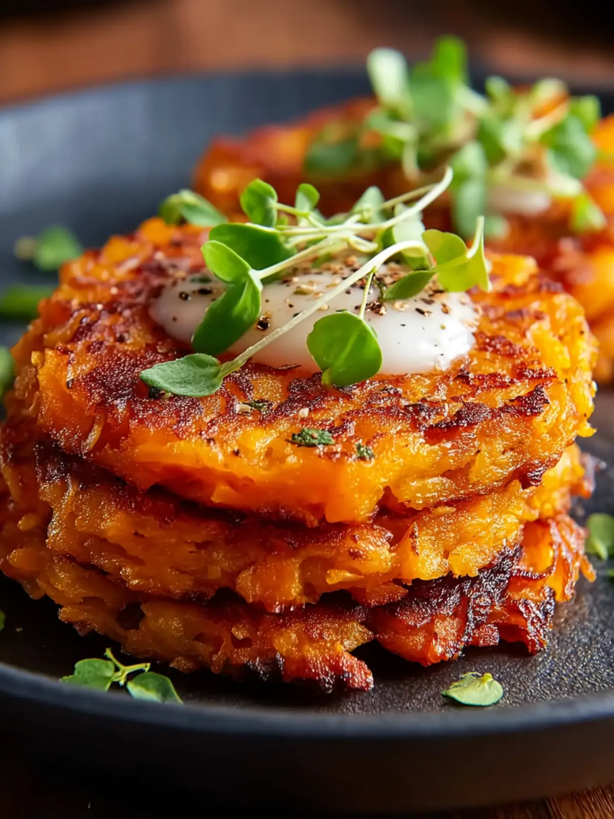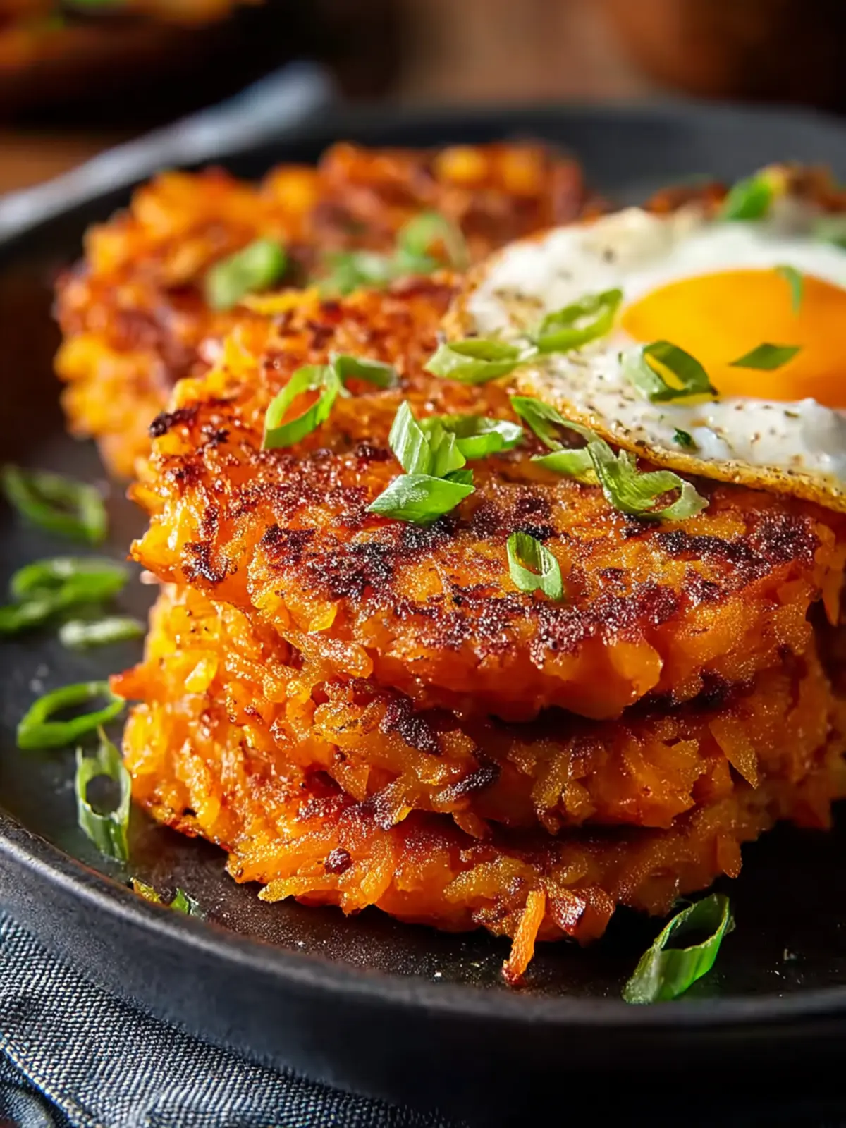 Delicious and crispy hash browns made with sweet potatoes, perfect for breakfast or a snack!