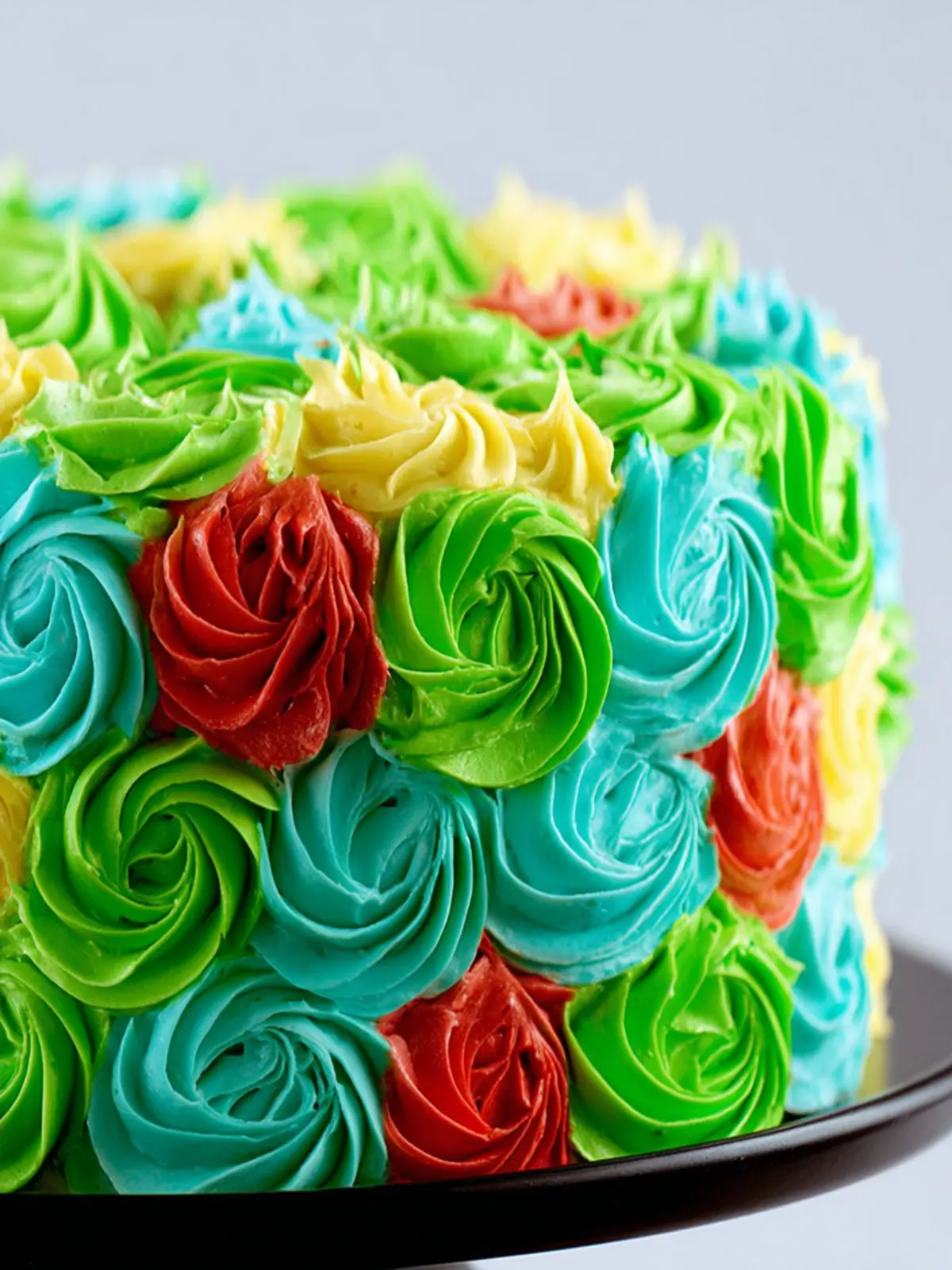 Rainbow Rosette Cake: Use gel food coloring to create a rainbow effect. Applying concentric swirls with different colors can turn your cake into a vibrant masterpiece, perfect for birthdays.
