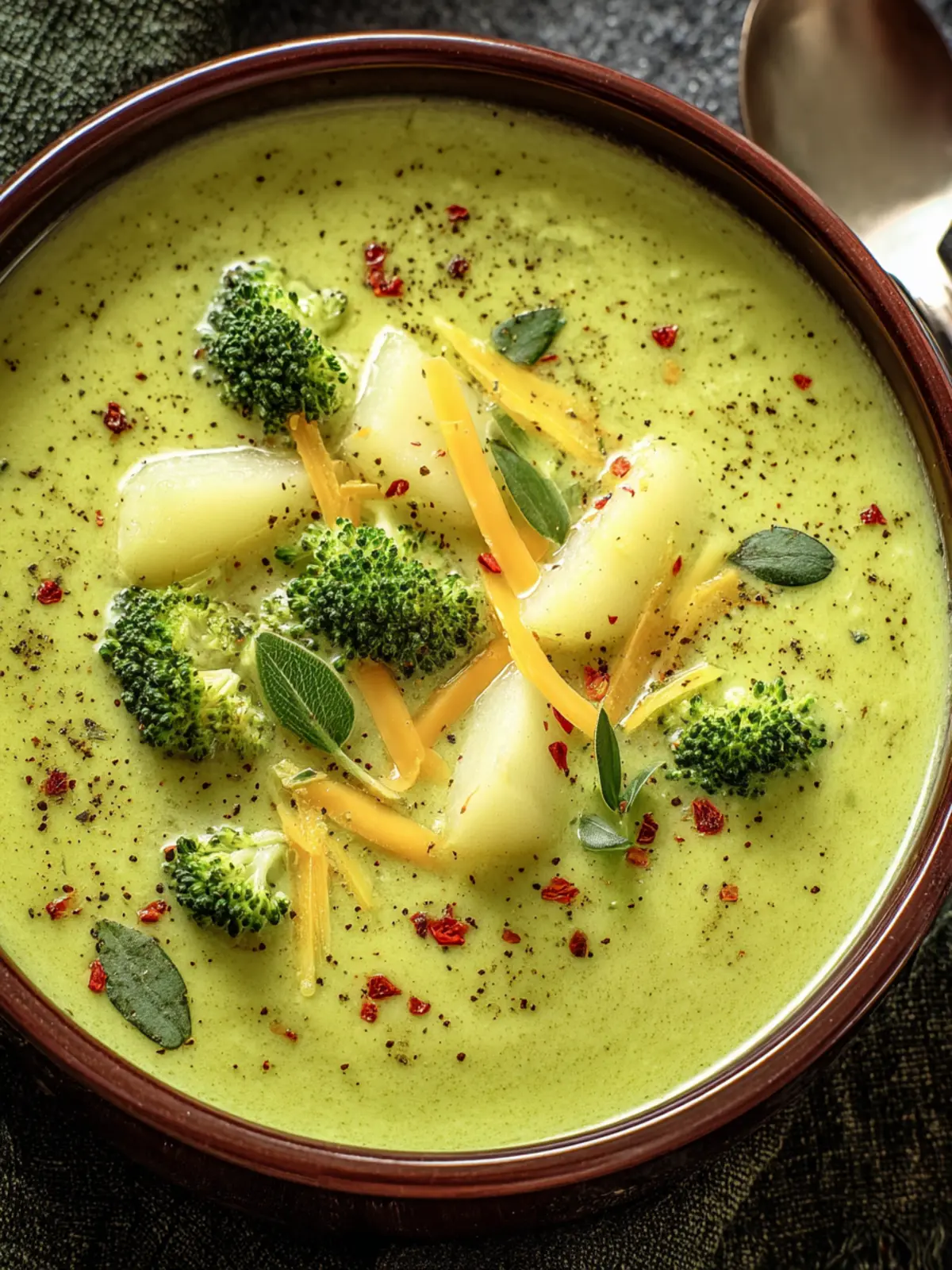 A delicious creamy soup made with fresh broccoli and potatoes, perfect for any occasion.