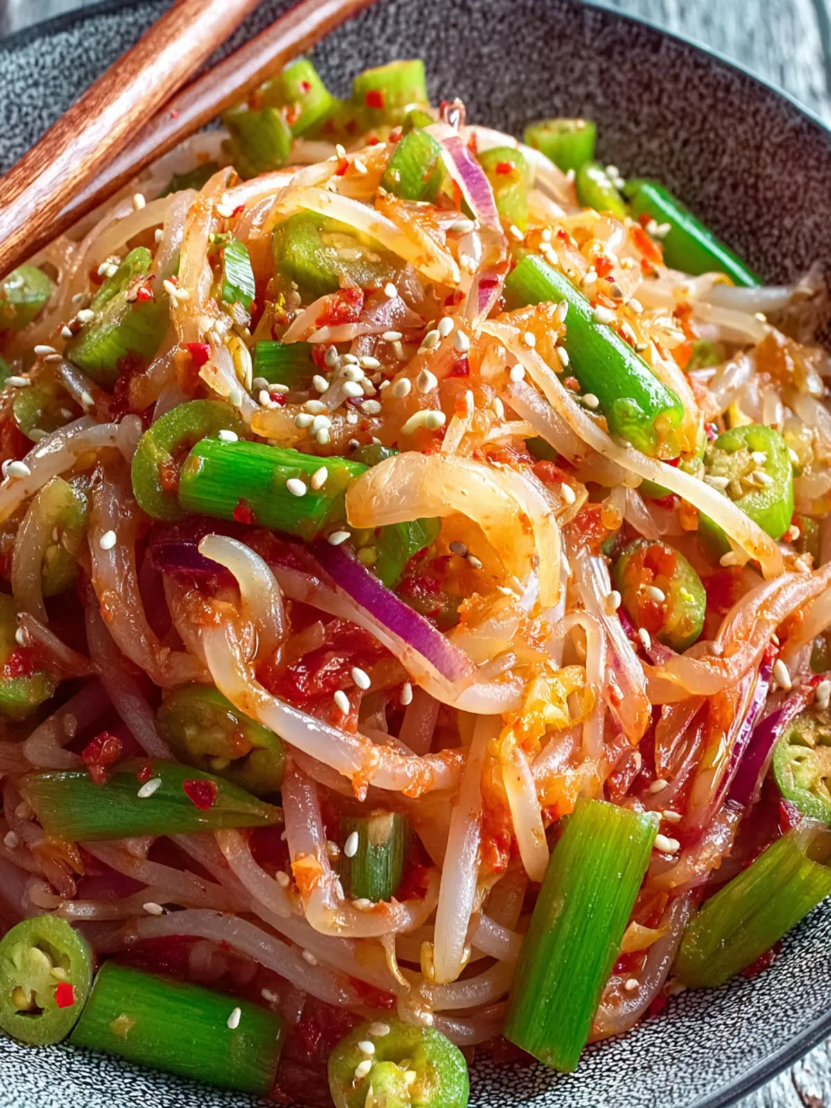 Fresh mung bean sprouts are the star of this dish. They provide that satisfying crunch and a mild flavor that balances well with the spicy elements. Look for firm, bright sprouts; if you can’t find them, you can use soybean sprouts for a slight variation.