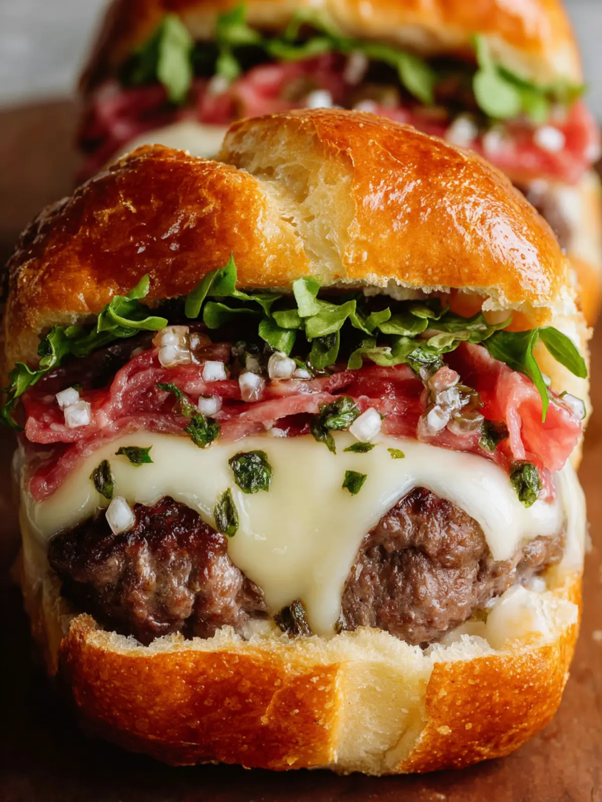 Garnish Ideas: Top your muffuletta stuffed burger with a dollop of olive tapenade or a slice of provolone cheese for added depth. Fresh herbs like basil or parsley not only enhance the flavors but also add a pop of color.