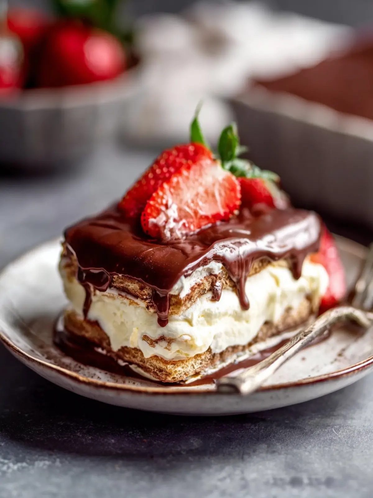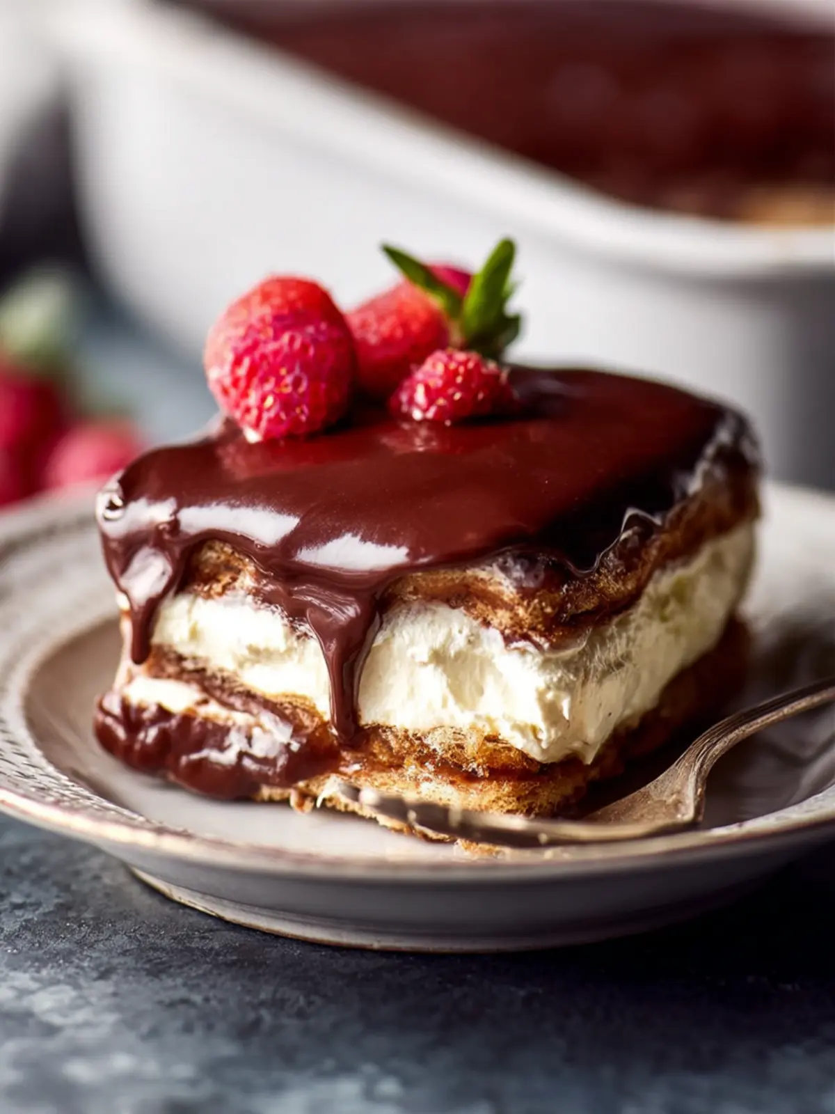 For the perfect serving, slice the no-bake chocolate eclair cake into squares and garnish with fresh berries or a drizzle of chocolate syrup. If you’re feeling fancy, add a dollop of whipped cream for an extra touch!