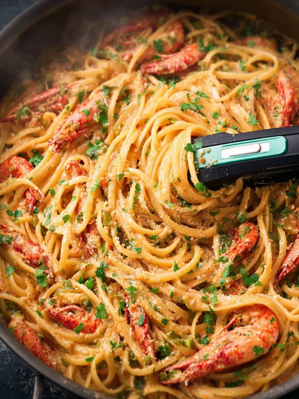 - Lower the heat and add the crawfish tails once the pasta is cooked but still al dente. Stir in the cream and grated Parmesan and simmer gently just for a minute or so to warm through.