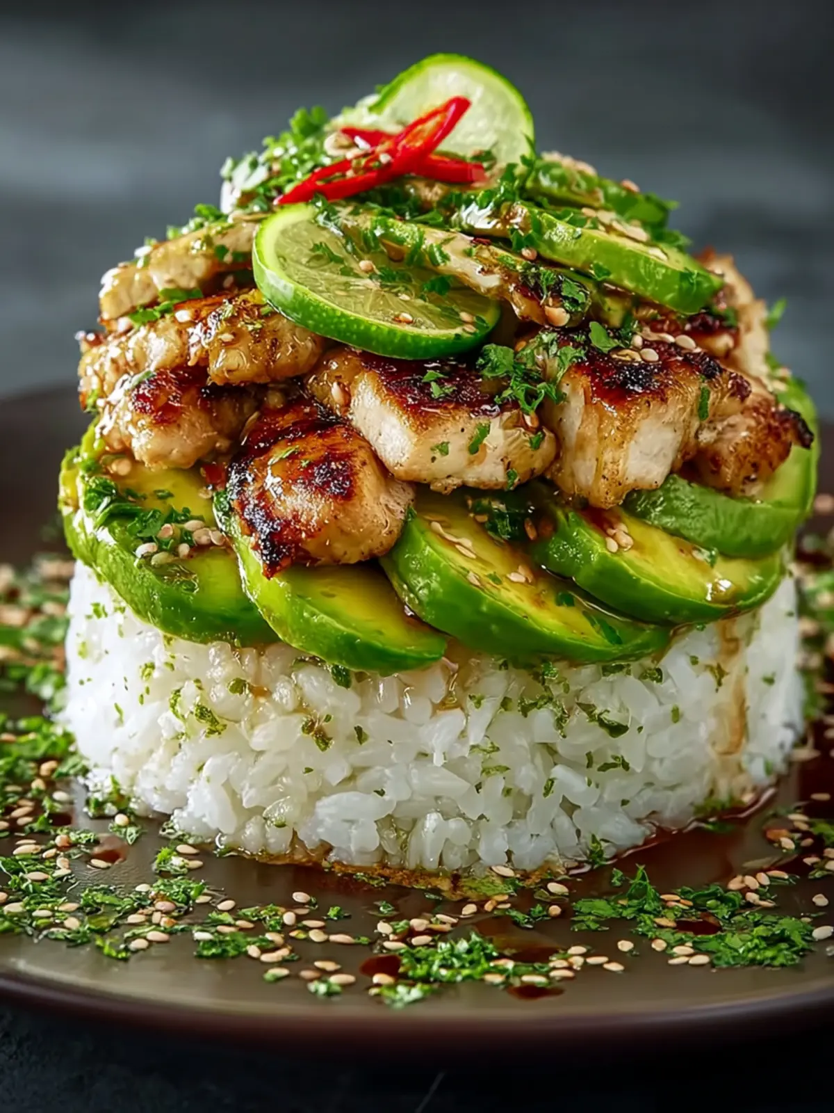 Tangy Honey Lime Chicken: A Delightful Avocado Rice Stack