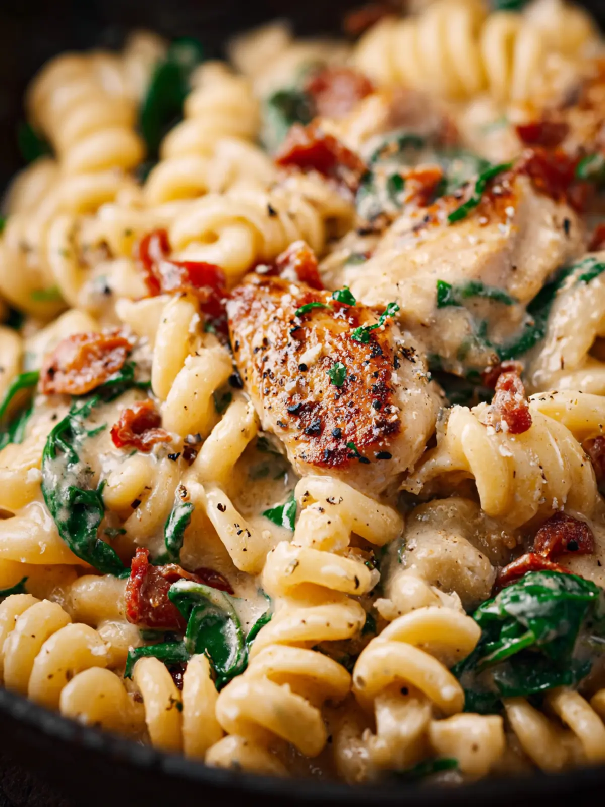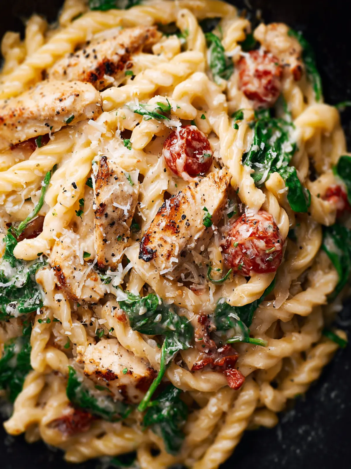 The Tuscan Chicken Pasta Recipe is loaded with fresh ingredients that burst with flavor. Fresh spinach, juicy chicken, and creamy Parmesan come together to create a dish that’s not only delicious but also visually appealing. You’ll love how those vibrant colors light up your dinner plate.