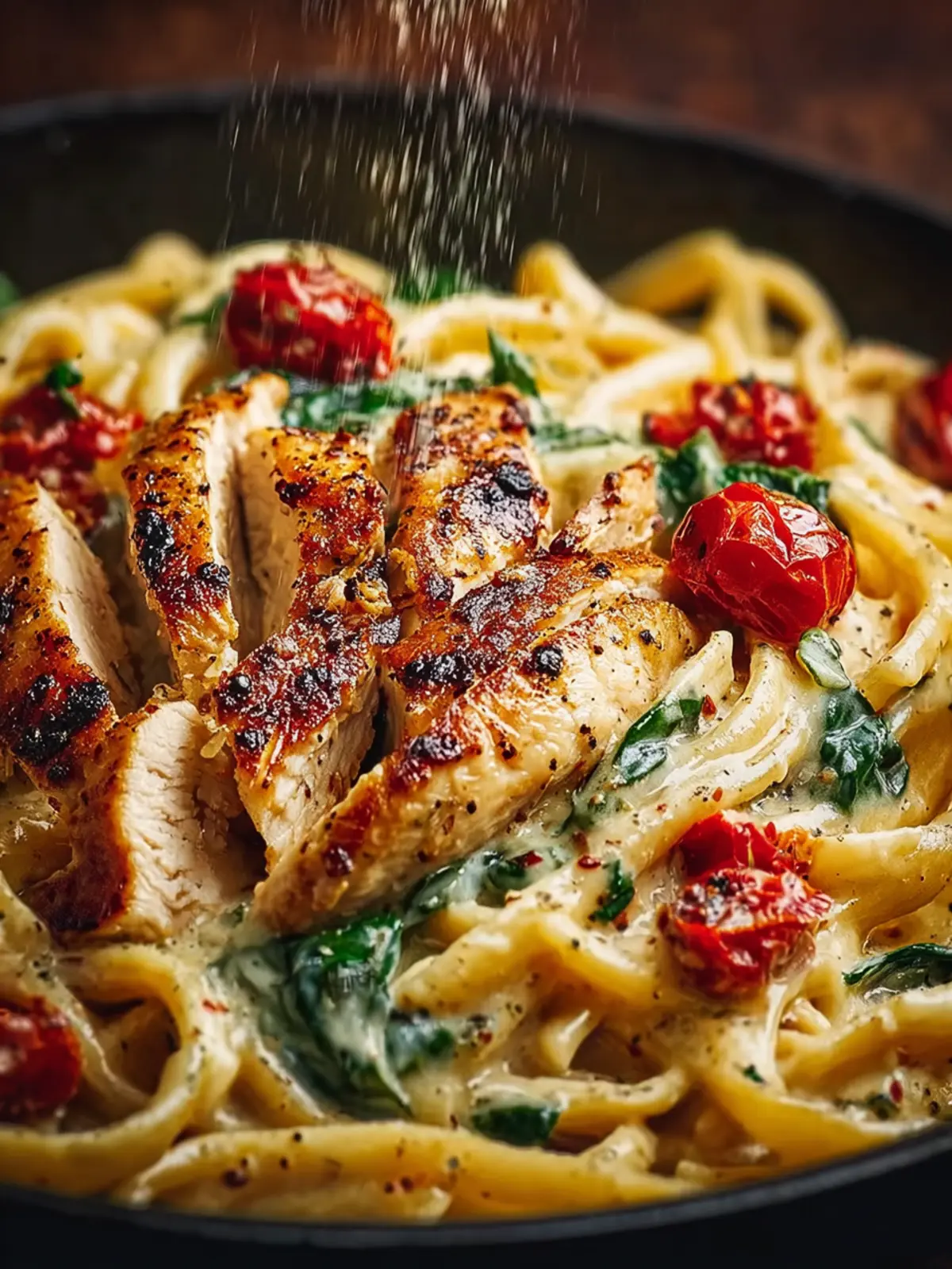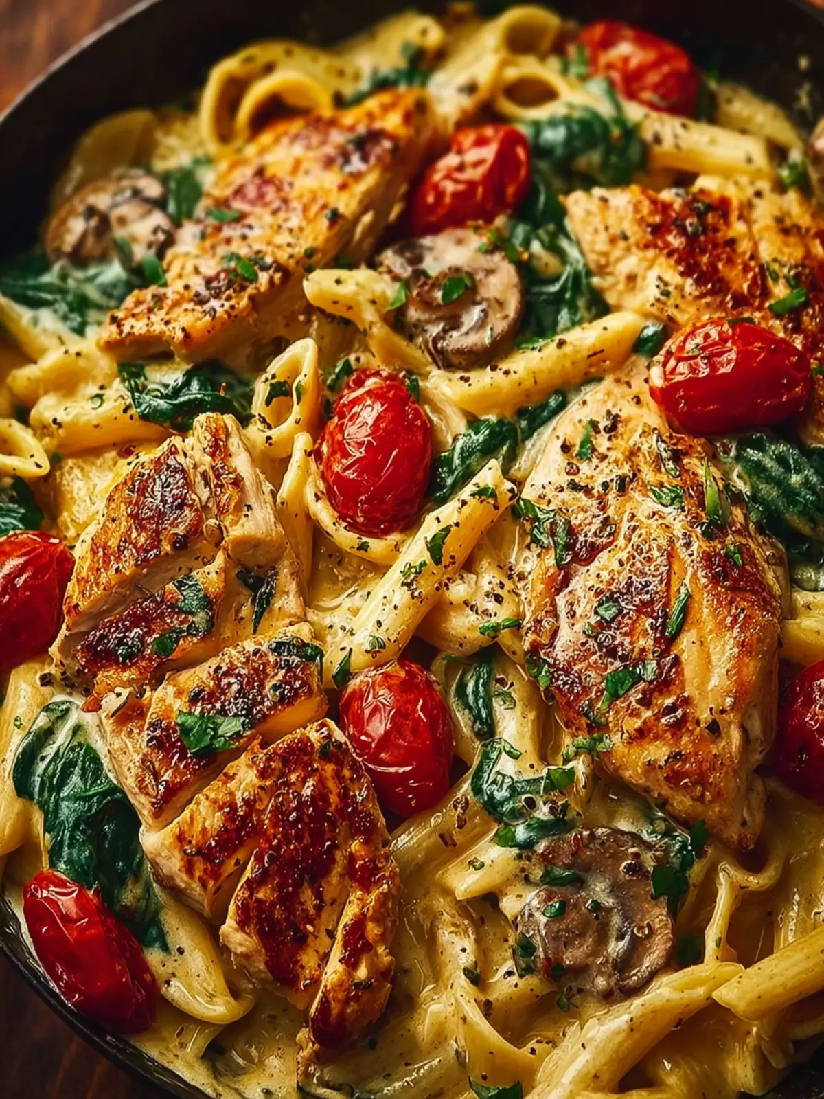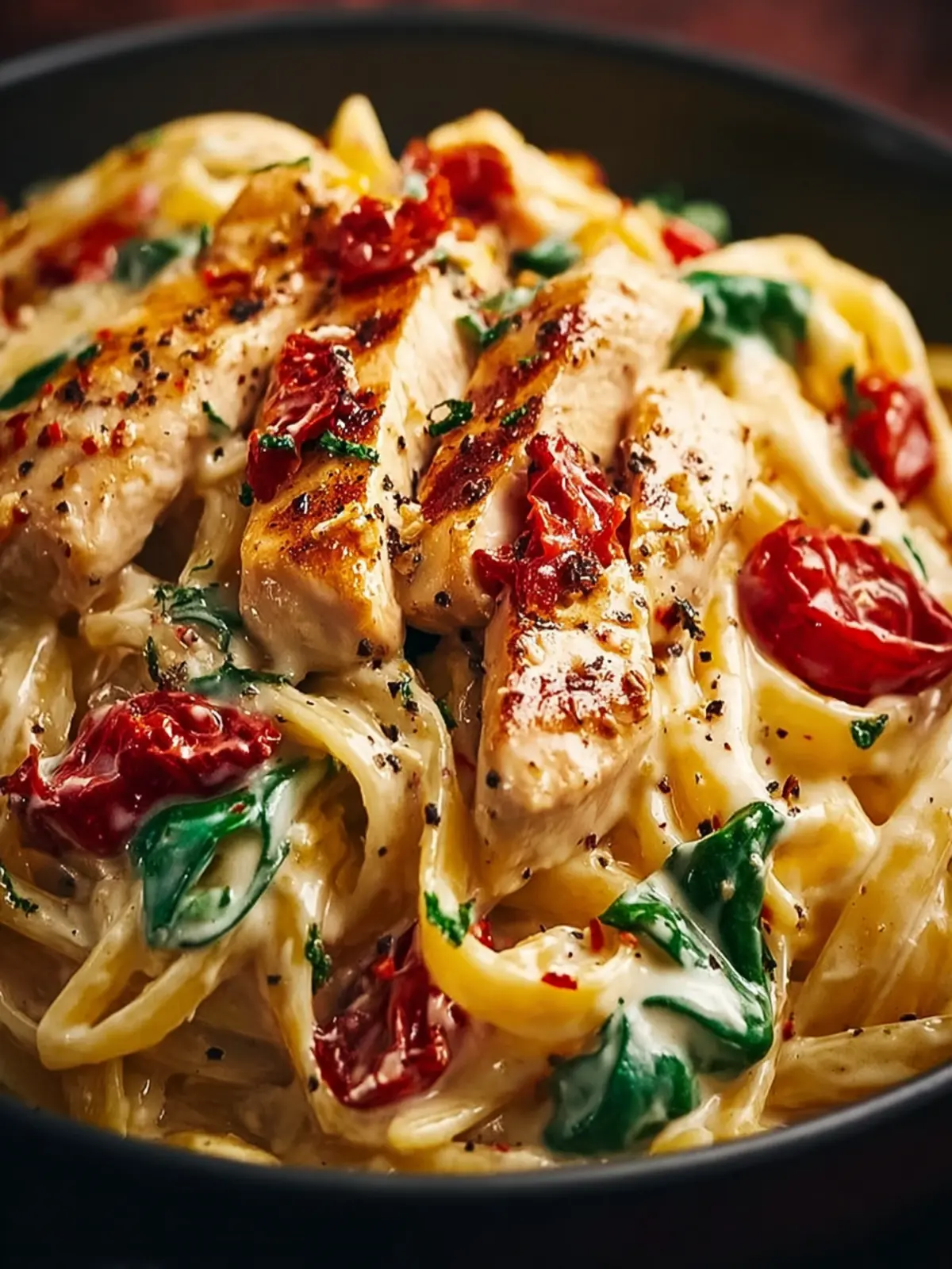 Nutrient-Rich Ingredients: Packed with protein from the chicken and vitamins from fresh spinach and sun-dried tomatoes, this pasta dish ensures you’re eating healthily while still enjoying rich flavors.
