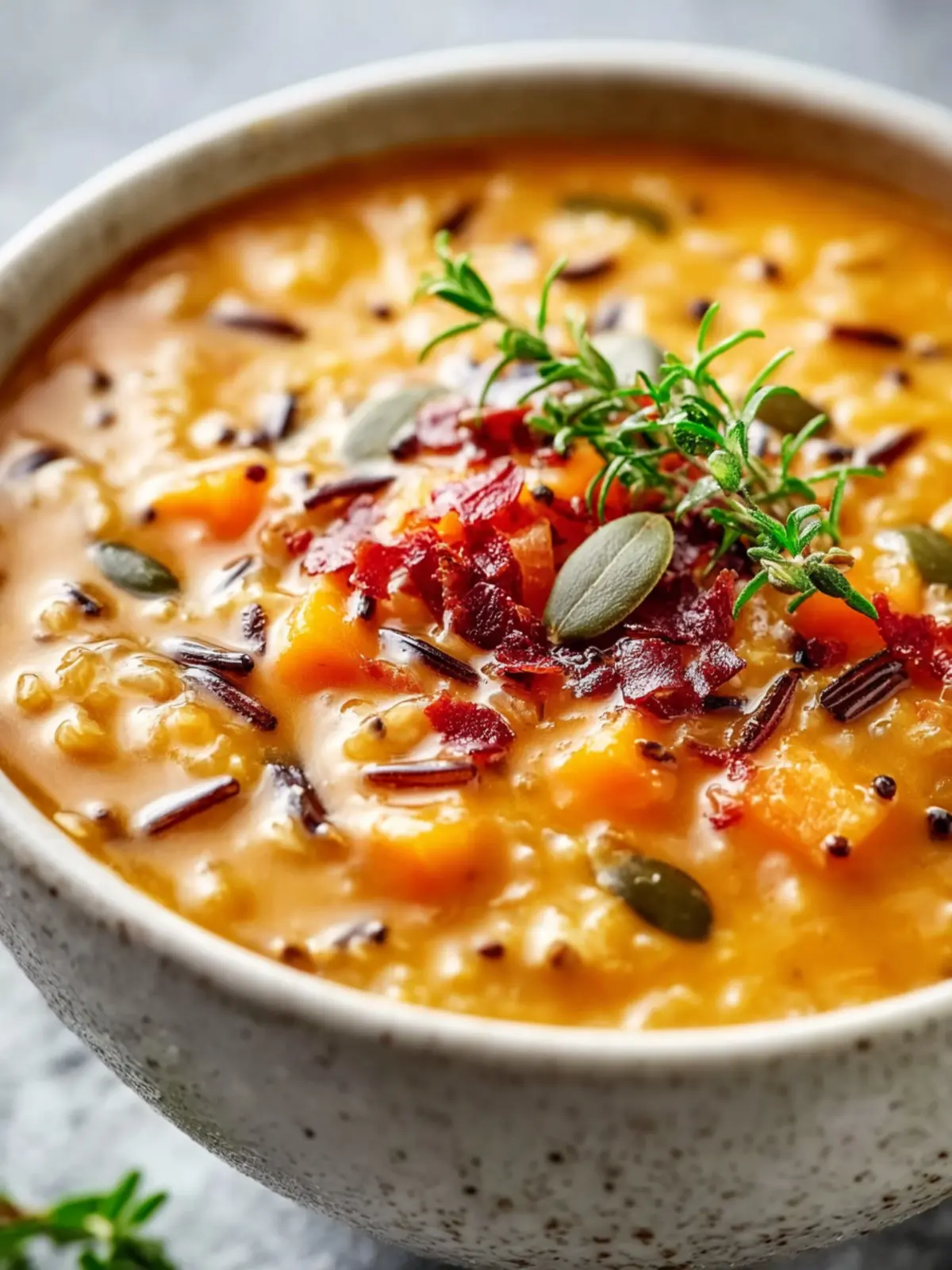 This comforting pumpkin wild rice soup is packed with flavor and nutrients, perfect for a chilly day.